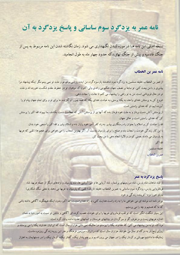 اولین کسی باشید که دیدگاهی می نویسد “نامه عمربه یزدگردوپاسخ آن”